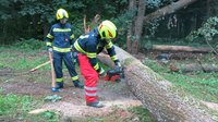 Der erste Baum wurde ohne großem Aufwand zügig mit mehreren Motorsägen zerteilt und zur Seite geschafft.