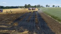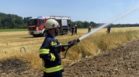 Der betroffene Landwirt dreschte bis zum eintreffen der Feuerwehr rund um die betroffene Zone ab um den Brand bestmöglich einzugrenzen. Durch den gleichzeitigen Einsatz von mehren Strahlrohren konnte der Feldbrand begrenz und schlussendlich abgelöscht werden.