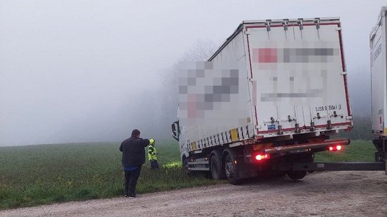 Am Nachmittag kam ein LKW Fahrer und eine missliche Lage nach einem missglückten Wendemanöver abseits der Hauptverkehrswegen.