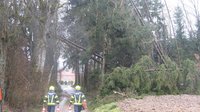 In einem Wald an der Grenze zu Sierning, entlang einer Straße nach Schiedlberg wütete der Sturm ziemlich stark und hatte einige Bäume entwurzelt, davon 2 direkt über die Fahrbahn. Weitere abgebrochene Äste sind in Baumkronen hängen geblieben und drohten auf die Straße abzustürzen. Die unmittelbaren gefahren wurden mittels Seilwinde entfernt. Aufgrund der weiteren Wettervorhersage und angekündigten Sturmböen, wurde dieser Abschnitt erstmal abgesperrt, bis das Wetter sich beruhigt und der Wald aufgearbeitet werden kann.
