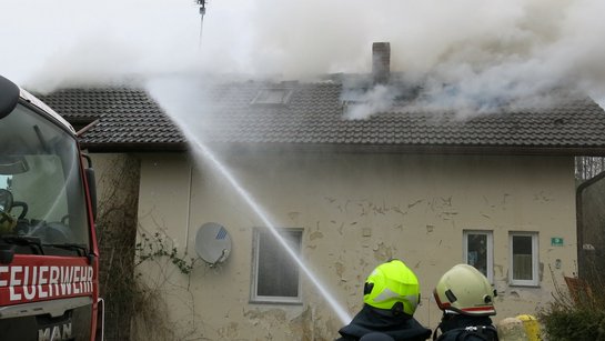 Der Tank Rohr führte sofort einen Innenangriff mit schweren Atemschutz durch. Da ein Innenangriff aufgrund herabfallender Teile zu gefährlich wurde, wurde mit der Drehleiter Bad Hall das Dach geöffnet, und die Löscharbeiten von außen durchgeführt.